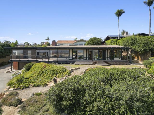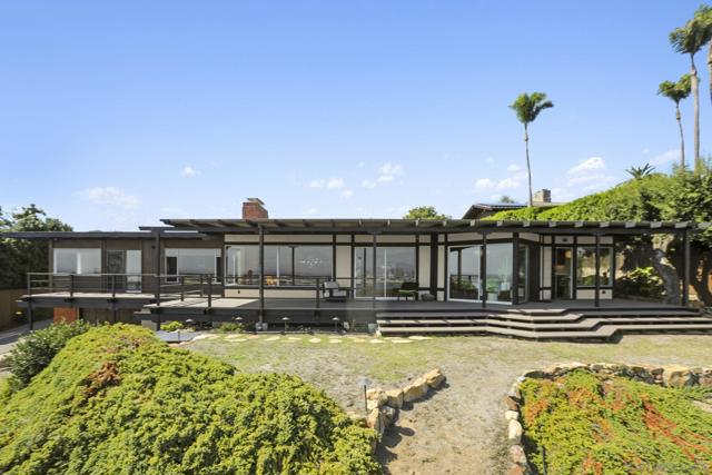 Exquisite mid-century modern home with hypnotic views across the bay and Pacific to Downtown, Coronado and the Channel Islands, is a masterwork of timeless style married with contemporary living. Gracefully sited at the pinnacle of a premier Point Loma cul-de-sac, the home sublimely integrates with its natural surroundings and maximizes the beauty and movement of the extraordinary views. Expansive windows and sliding glass doors, a blend of textures and shape, and perfected elements of Japanese and zen design inform the home’s authentic reimagining. Interior spaces maximize natural light and encourage both socialization and quiet respite. Exterior decks offer both extended entertaining space or privacy. This meticulous and thoughtfully-created home is a testament to the highest standard of mid-century modern design.