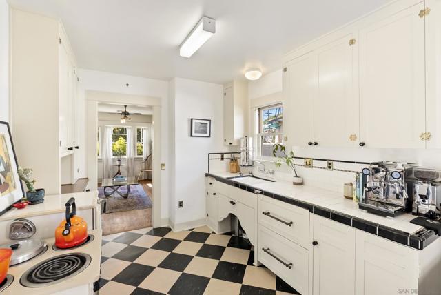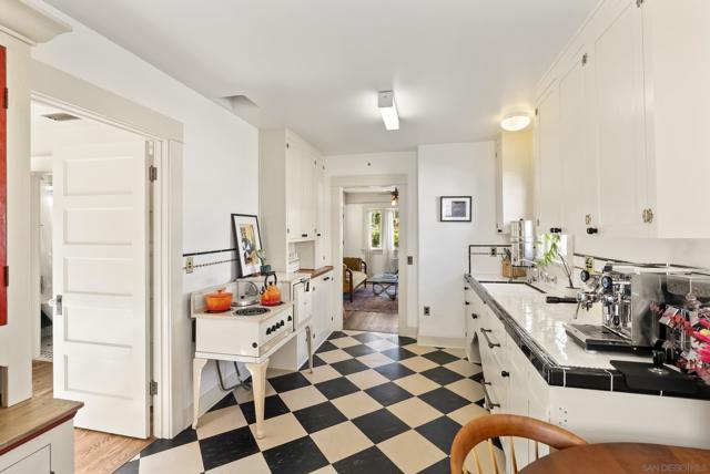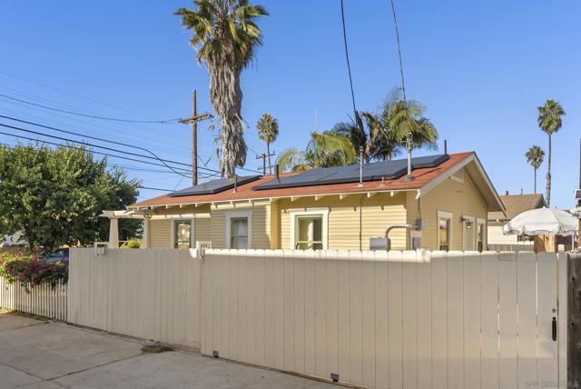 If you’ve been dreaming of a true Ocean Beach classic, this pristine original beach cottage is the one! Bursting with vintage charm and character, this 1922 gem has been lovingly restored from the studs up—combining timeless craftsmanship with thoughtful modern upgrades. Step inside to find lath and plaster walls, gleaming hardwood floors, a cozy brick fireplace, built-ins, and picture rail molding that honor its period roots. The light-filled kitchen features pristine original cabinetry, period tile countertops, charming checkerboard flooring, and a retro stove and oven. A hidden Sub-Zero drawer fridge/freezer and the original “California Cooler” seamlessly blend past and present. The bathroom shines with a restored clawfoot tub, vintage-style flooring, and a classic medicine cabinet. Every detail has been carefully preserved or upgraded, including owned solar, updated electrical panel and wiring, copper and ABS plumbing, seismic retrofitting, and A/C. The exterior retains the home’s original 1922 color, framed by a white picket fence, lush landscaping, and privacy fencing. Enjoy your morning coffee or a relaxing sauna session on the back deck, and take advantage of side-yard parking for two cars + a motorcylce—rare for this coveted location! Just one block from the beach and a short stroll to Ocean Beach’s favorite restaurants, cafes, bars, and shops. This is coastal living at its most authentic—an OB treasure where vintage charm meets modern comfort.