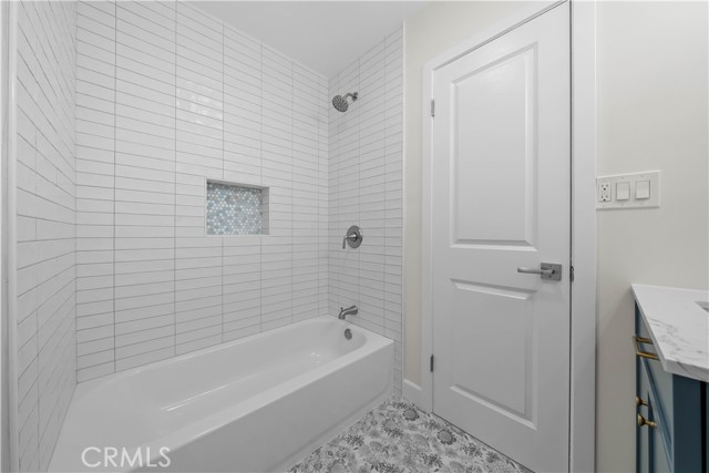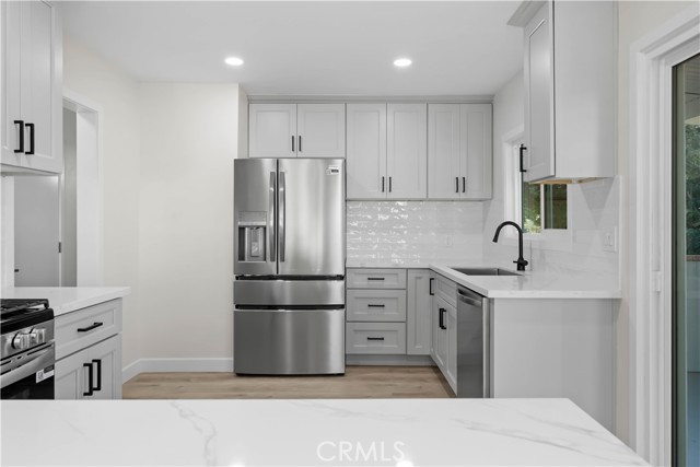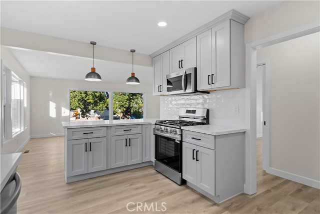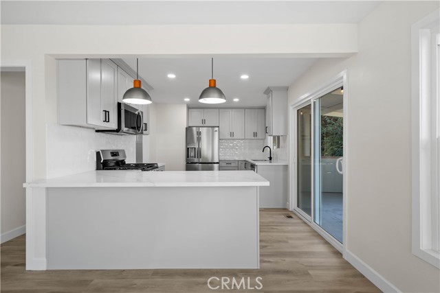 The kitchen has been completely updated with new shaker-style cabinetry, quartz countertops, a stylish tile backsplash, and stainless-steel appliances including a range, dishwasher, and refrigerator. Both bathrooms have been fully remodeled as well, showcasing new vanities, tile wainscoting, and updated fixtures. Just off the main living area, a private rear deck and sitting area provide an ideal space for outdoor relaxation, entertaining, or enjoying a quiet evening by a firepit.
