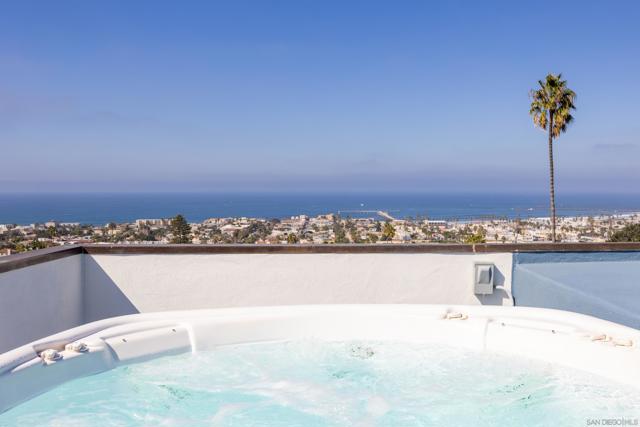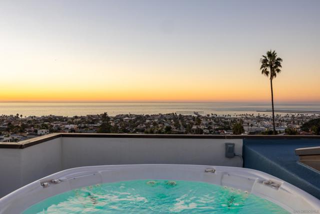 Experience the ultimate in coastal luxury with this Bristol-finished, one-of-a-kind, nautical-themed custom home in Ocean Beach, completed in 1998. A stunning 4-bedroom, 3.5-bathroom custom gem boasting 10-14 foot ceilings with an extra bedroom(ADU?) and bath over the garage. (In total, 5 bedrooms, 4.5 bathrooms.)The alley access garage is the perfect size for parking a Sprinter Van or small RV, providing secure parking. Perched high above the Pacific, with excellent walkability into Ocean Beach proper and just 6 blocks from the sand and waves. This architectural masterpiece offers expansive ocean views from each level, a custom bar in the downstairs living room, high-end custom finishes (such as a repurposed bronze channel marker buoy converted into a showpiece light above the main stairwell, copper, brass, bronze, stainless steel, and teak), incredible outdoor living spaces, and a rooftop deck with a jacuzzi featuring a 360-degree ocean-to-mountain view. Upstairs is an open and airy floor plan bathed in natural light, featuring an unbelievable gourmet kitchen with a repurposed copper smokestack from a decommissioned naval ship as a stovetop hood, custom repurposed teak yacht deck flooring, a new 24-bottle wine cooler, custom solid teak cabinetry, and a most surreal ocean view dining and family room area. The luxurious primary suite is a true private retreat, featuring a gas fireplace and an epic ocean view, complete with a spa-like en-suite, a giant walk-in closet, and a deck overlooking the blue horizon. This custom home captures the essence of California coastal living Experience the ultimate in coastal luxury with this Bristol-finished, one-of-a-kind, nautical-themed custom home in Ocean Beach, completed in 1998. A stunning 4-bedroom, 3.5-bathroom custom gem boasting 10-14 foot ceilings with an extra bedroom(ADU?) and bath over the garage. (In total, 5 bedrooms, 4.5 bathrooms.)The alley access garage is the perfect size for parking a Sprinter Van or small RV, providing secure parking. Perched high above the Pacific, with excellent walkability into Ocean Beach proper and just 6 blocks from the sand and waves. This architectural masterpiece offers expansive ocean views from each level, a custom bar in the downstairs living room, high-end custom finishes (such as a repurposed bronze channel marker buoy converted into a showpiece light above the main stairwell, copper, brass, bronze, stainless steel, and teak), incredible outdoor living spaces, and a rooftop deck with a jacuzzi featuring a 360-degree ocean-to-mountain view. Upstairs is an open and airy floor plan bathed in natural light, featuring an unbelievable gourmet kitchen with a repurposed copper smokestack from a decommissioned naval ship as a stovetop hood, custom repurposed teak yacht deck flooring, a new 24-bottle wine cooler, custom solid teak cabinetry, and a most surreal ocean view dining and family room area. The luxurious primary suite is a true private retreat, featuring a gas fireplace and an epic ocean view, complete with a spa-like en-suite, a giant walk-in closet, and a deck overlooking the blue horizon. This custom home captures the essence of California coastal living and is a must-see to believe.