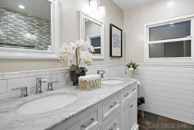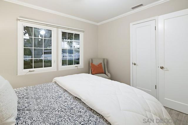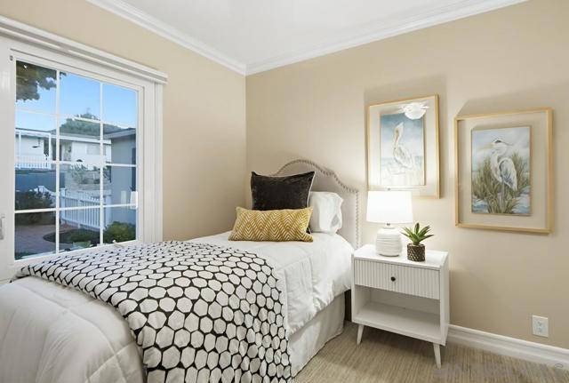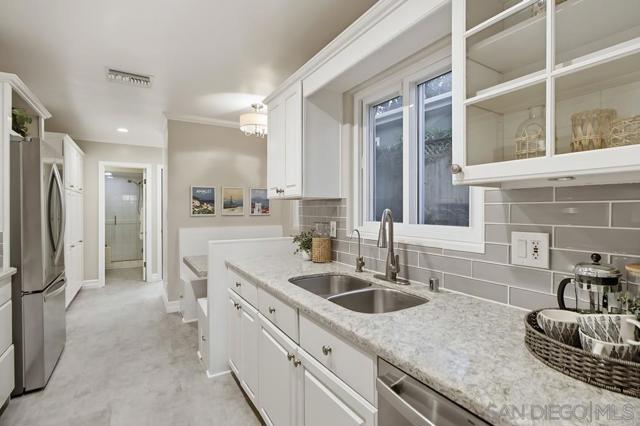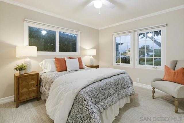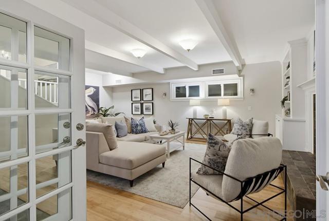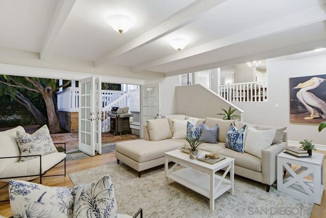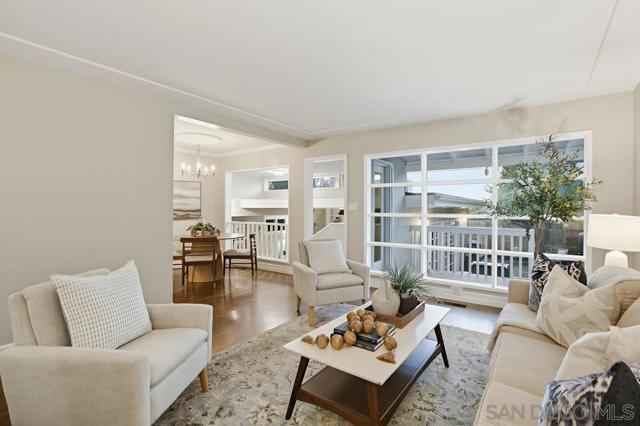 Beautifully remodeled Point Loma home with the perfect blend of charm and craftsmanship. Move-in ready home showcases newer windows and doors, hardwood floors, refinished fireplaces accented with craftsman-style carpentry, moulding, and built-ins. Renovated kitchen features quartz countertops, newer appliances, and a charming eat-in breakfast nook. Primary suite opens to a spacious deck and includes a fully renovated bathroom. Multiple decks extend from both the living room and the large family room—both featuring cozy fireplaces—perfect for outdoor dining and effortless indoor/outdoor living. Additional upgrades include A/C, an outdoor jacuzzi, owned solar, a beautifully landscaped grassy front yard, and ample space for family gatherings. Excellent location near San Diego Bay, Liberty Station, Plumosa Park, beaches, shops, schools, and restaurants. Peek views of Point Loma, with potential to add a second story for even more expansive views.