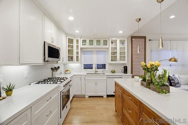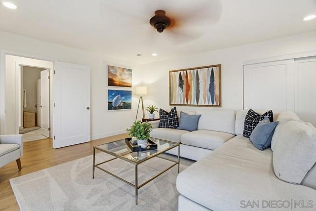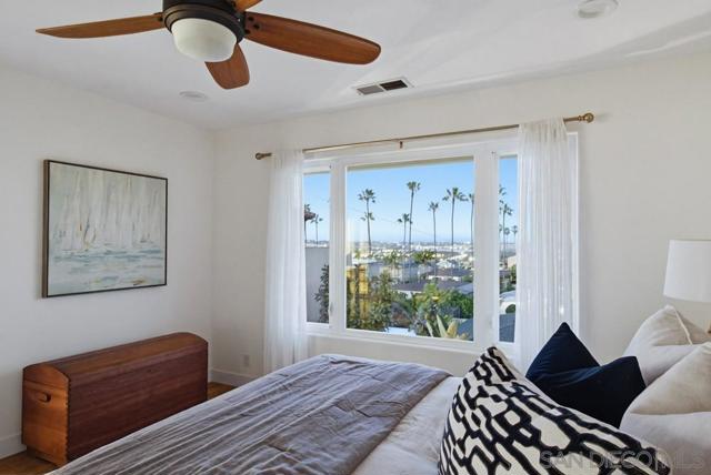 Incredible ocean, bay, nightlight, fireworks & sunset views set the stage for this California Coastal beauty in Point Loma Heights!! Plus there is an assumable VA loan at a great rate! Features include 4br/4ba, a remodeled kitchen w/high-end Forno appliances & quartz counters, vinyl windows & sliders, luxury vinyl flooring, fireplace, HVAC, owned solar, outdoor kitchen, HUGE oversized 2 car garage & optional RV/boat parking. Spacious bedrooms, 1st floor primary, updated baths, family room & tons of natural light. Gorgeous yards w/drought tolerant landscaping, fruit trees, outdoor kitchen, spa & super cool outdoor shower/yoga/Zen retreat. Multiple view decks w/ocean, coastline, nightlights, fireworks & OB's iconic palm trees views! Blocks to the beach, nightlife, cafes, dining & award winning schools. Walk in and fall in LOVE!!!!