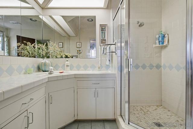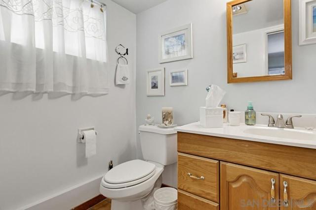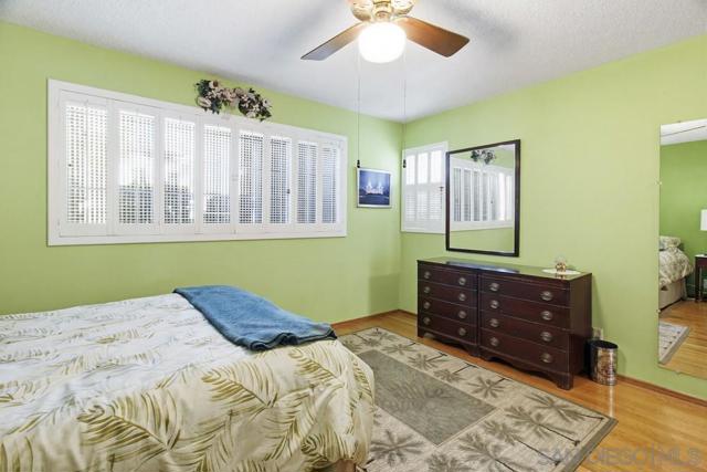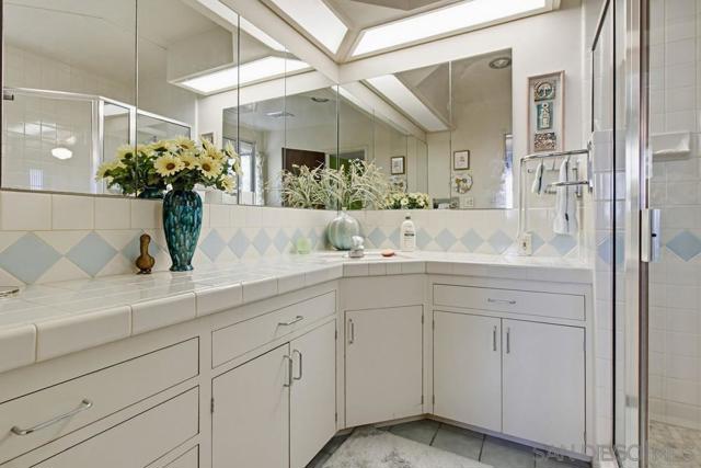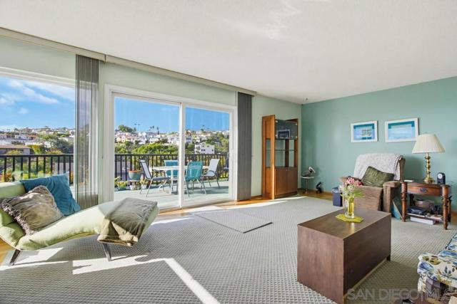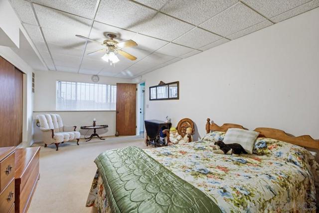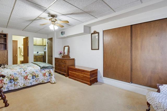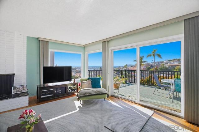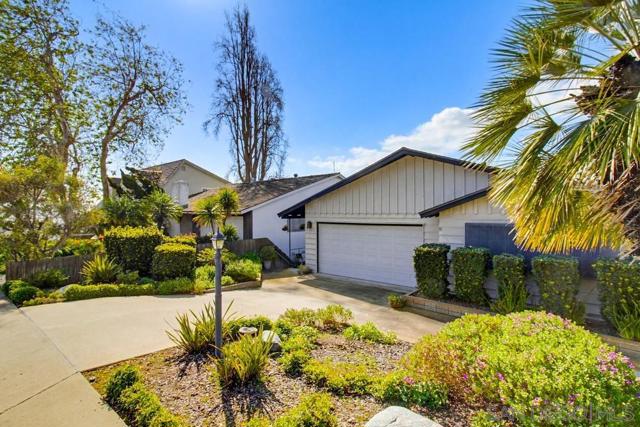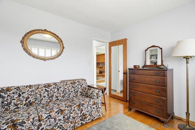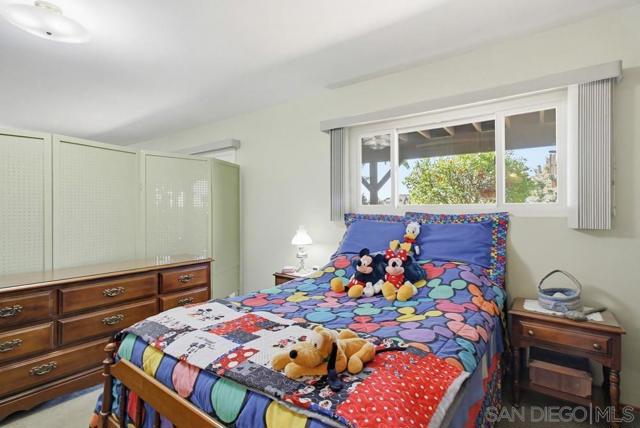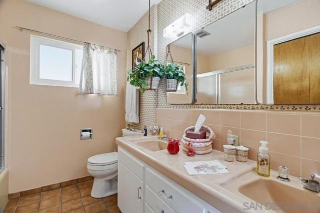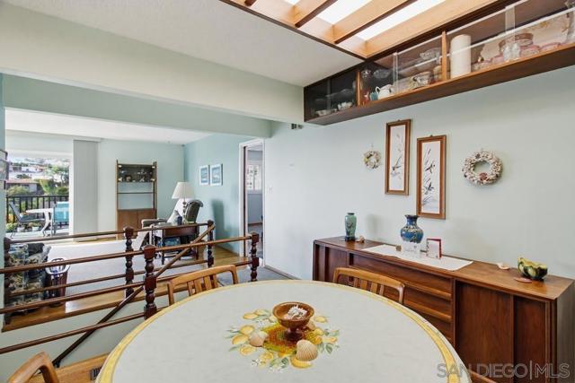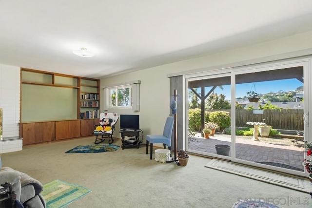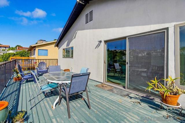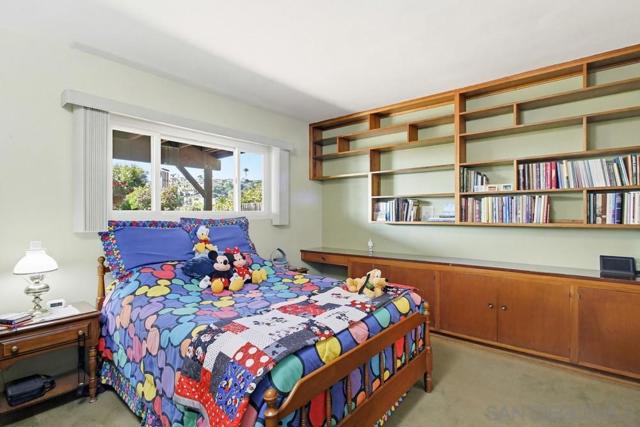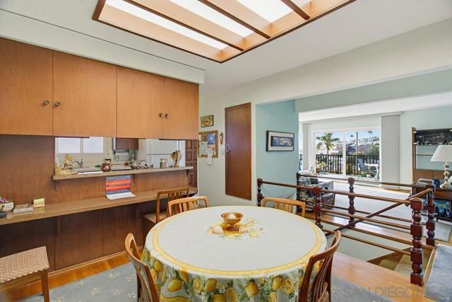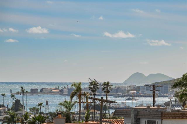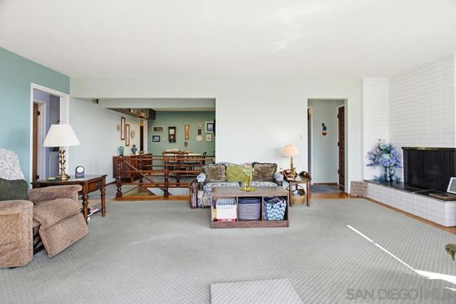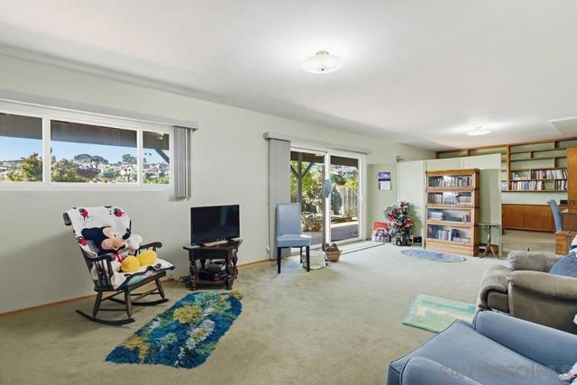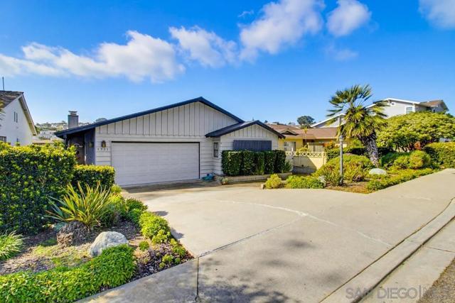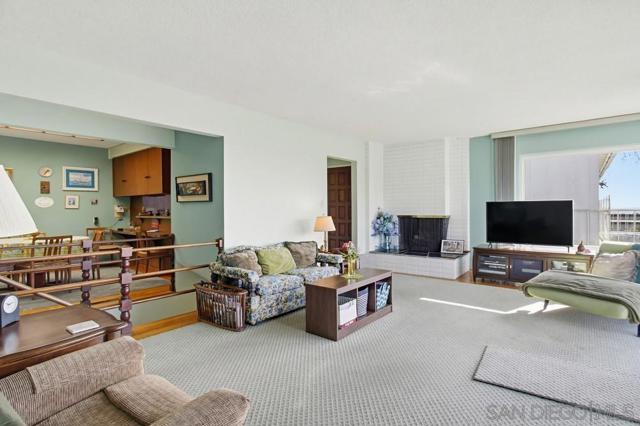 Nestled in a private cul-de-sac, this stunning home offers the perfect blend of classic charm and breathtaking scenery. The upper level features hardwood floors throughout the living room, hallway, and bedrooms. In the living room, expansive corner windows frame unobstructed views of North Island, San Diego Bay, and the Pacific Ocean. Step through the doors to a large viewing deck, perfect for sunset entertaining. The functional floor plan includes a dining room conveniently located off the kitchen, complete with a breakfast bar. A versatile third bedroom features handsome paneling, making it an ideal home office, while an abundance of built-in closets provides excellent storage throughout. Both bathrooms showcase pristine tile work in excellent condition. The lower level is designed for flexibility and fun, featuring a spacious rec room with a second fireplace, slate hearth, and built-in wood bookcases. A partial partition creates a separate living area with its own bathroom—perfect as a fifth bedroom or guest suite—leading out to a brick patio with coastal views. The property also includes a guest/au pair suite with built-in closets, a private bathroom, a kitchenette, and access to a massive under-house storage area. Exterior highlights include a two-car attached garage, a newer roof, a fully fenced yard with mature orange trees, and lush flowering plants.