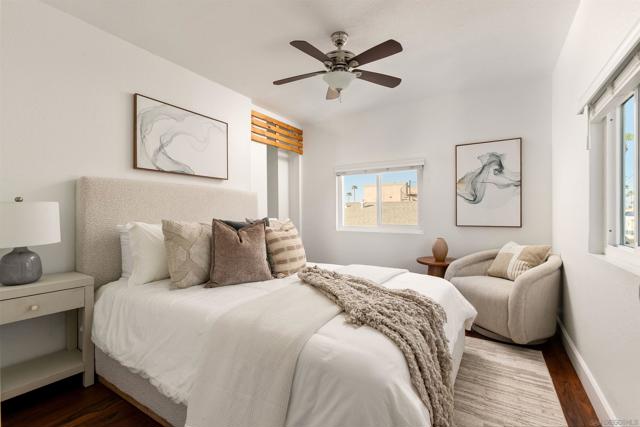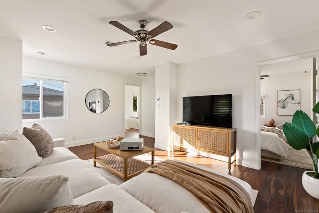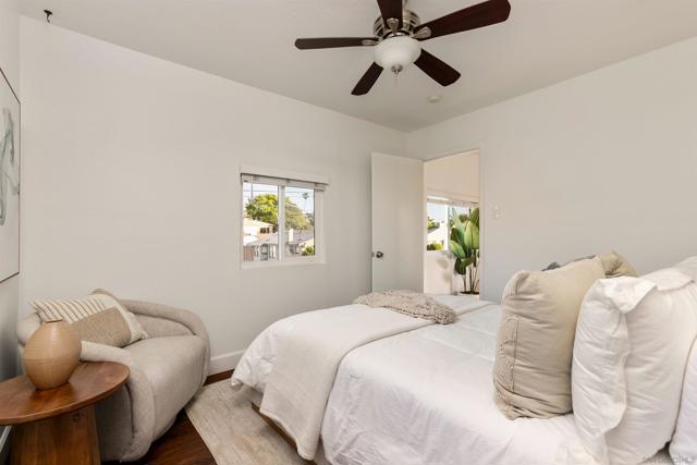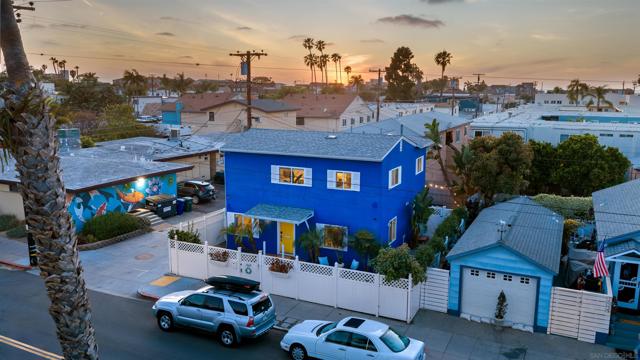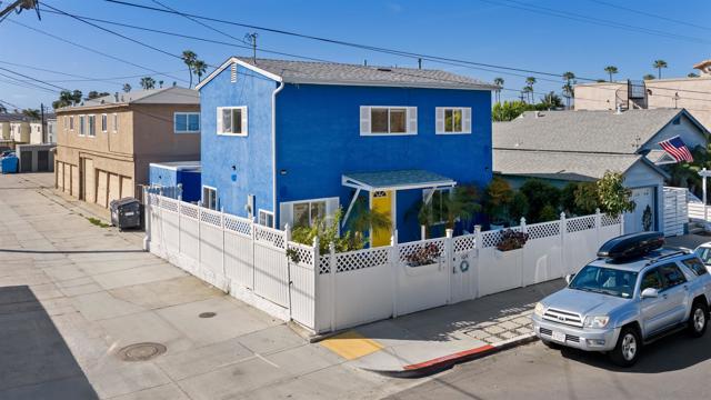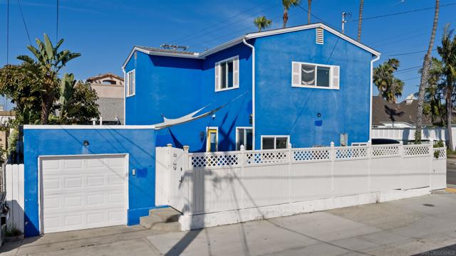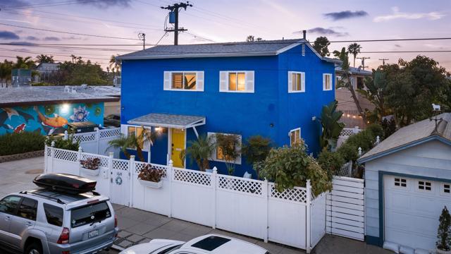 Just two blocks from the beach and one block to Newport Avenue, in the heart of Ocean Beach, this beautifully situated two-story corner-lot residence embodies relaxed coastal luxury with unmatched walkability. Perfectly positioned for effortless access to the sand, surf, and OB’s vibrant dining and nightlife scene, the home offers a rare combination of lifestyle and unique versatility of income potential. The upper level features light-filled living room, two-spacious bedrooms and bath, while the lower level functions as a flexible living quarters with a full bedroom, bath, and dual kitchen setups each complete with its own refrigerator, stove, microwave and laundry. With three separate entry doors, the layout is ideal for multigenerational living, or rental flexibility. Extensive upgrades elevate the home throughout, including dual-pane windows, central A/C and heating, and a new roof. The interior has been fully refreshed with new paint, all-new LED recessed lighting and fixtures, and brand-new carpet on the staircase. Both bathrooms have been tastefully remodeled for a clean, modern feel. Outdoors, the property is finished with vinyl fencing, front and rear gates, a welcoming front porch, and a private concrete patio perfect for coastal evenings. A detached one-car garage with alley access adds convenience and storage. Just moments from Ocean Beach’s iconic shops, cafés, and shoreline, this is a rare opportunity to own a highly flexible coastal property in one of San Diego’s most beloved beach communities, perfect as a primary residence, vacation retreat, or investment.